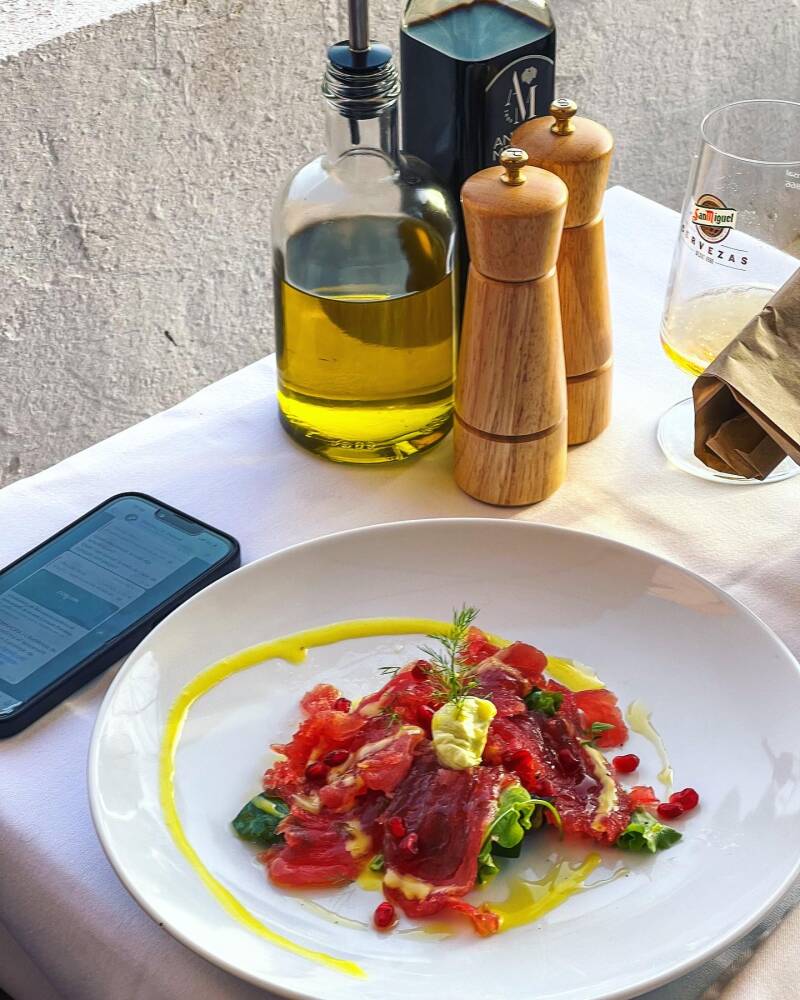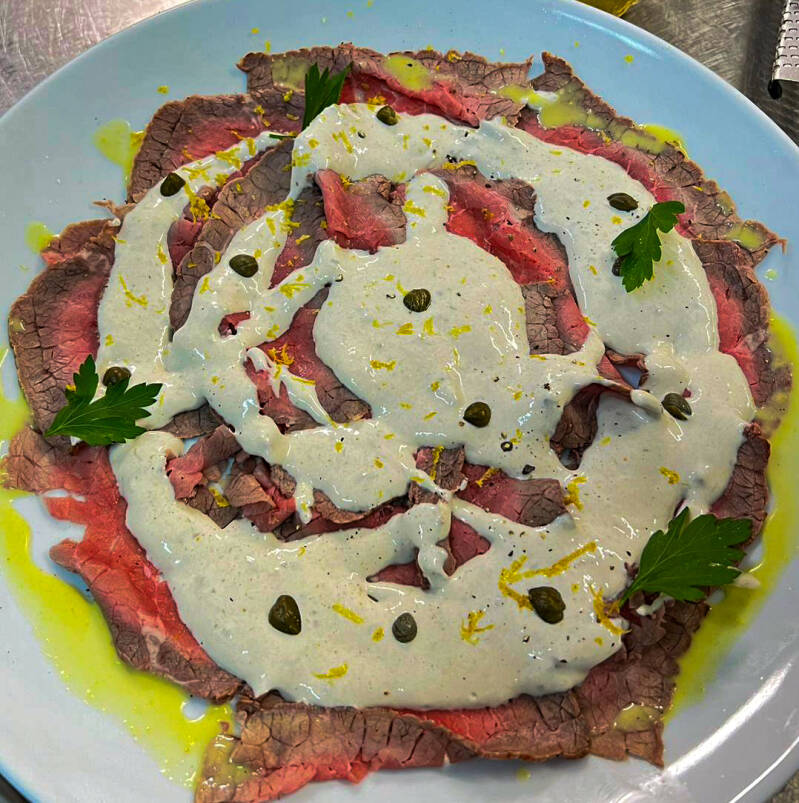 Pescaccio di tonno "qualità sashimi" con crema di wasabi.